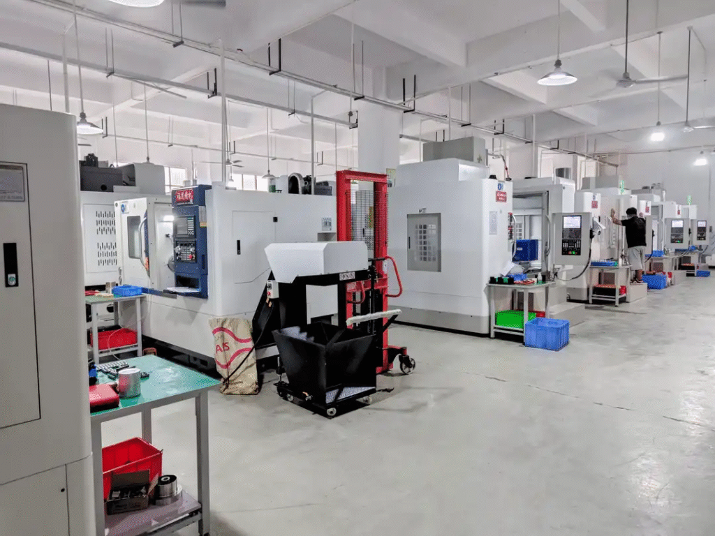 Figure 1: The advanced CNC machining floor at JS Precision. Our facility is equipped with multi-pallet 5-axis mills and integrated robotics, enabling unattended production for high-volume orders while maintaining tolerances within ±0.005 inches.